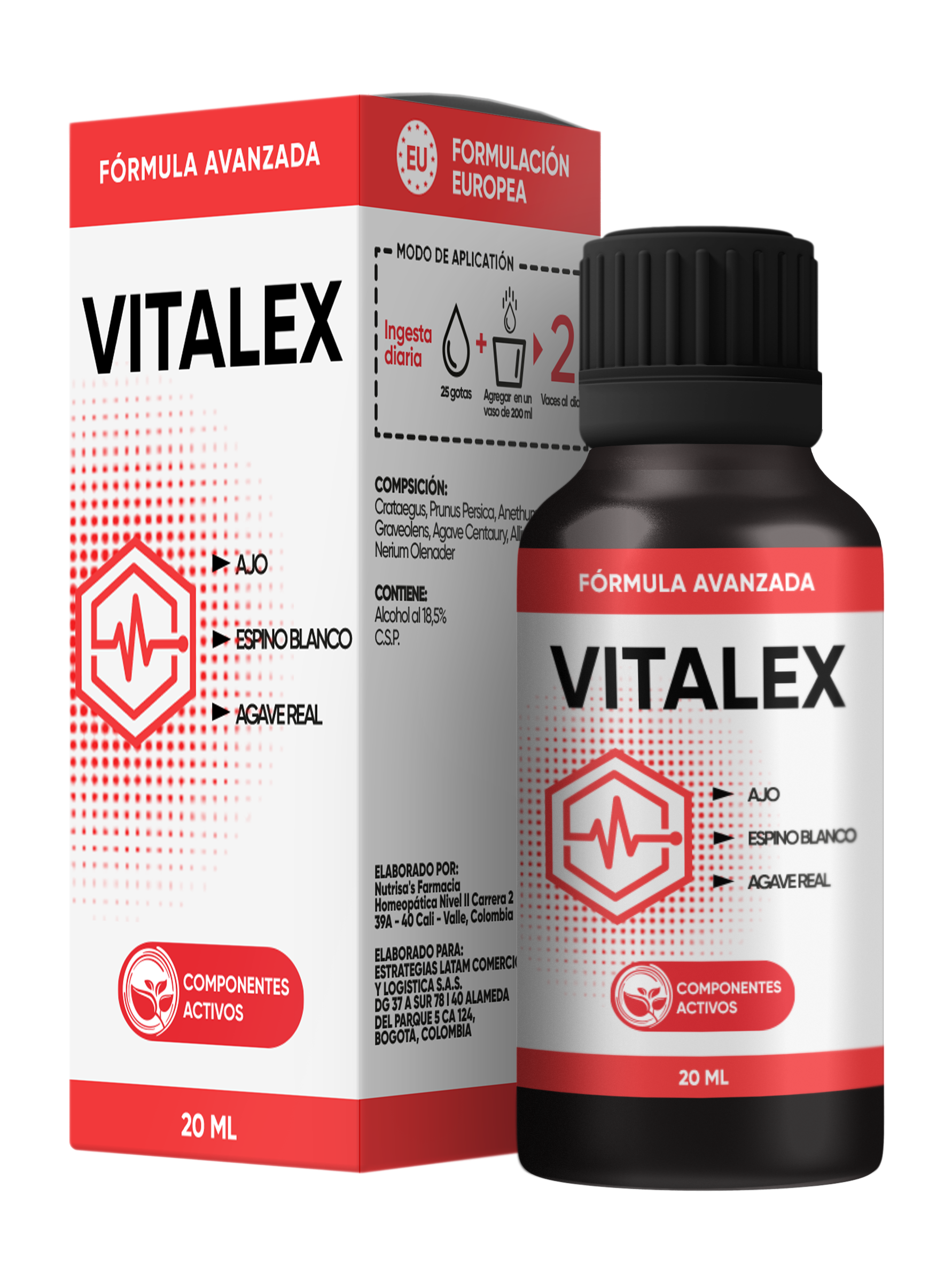 Vitalex contiene una gama de ingredientes medicinales a base de hierbas: espino, eneldo, melocotón, ajo, laurel, agave. Todos los componentes son ricos en una gran cantidad de vitaminas, antioxidantes y oligoelementos que son beneficiosos para el corazón y los vasos sanguíneos. Este producto fue elaborado con tecnología innovadora y ayuda a mantener la presión arterial bajo control. Limpia los vasos sanguíneos de las placas de colesterol y mejora la función cardíaca. El resultado está 100% garantizado.